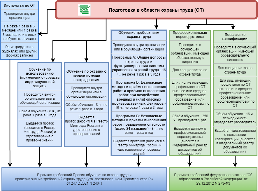 В общем случае подготовка в области охраны труда является совокупностью различных программ обучения: