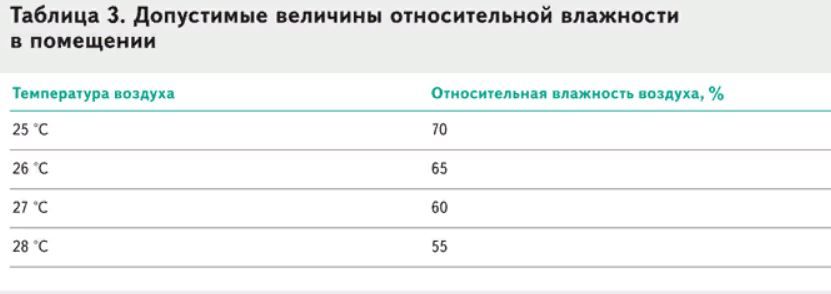 Минимальный уровень влажности всегда 15 процентов, а максимальный зависит от температуры в помещении. Например, при температуре 25 °С относительная влажность не должна превышать 70 процентов. Чтобы оценить условия микроклимата, замерьте его параметры и сравните их с нормативами с учетом категории работ (таблицы 1–3).