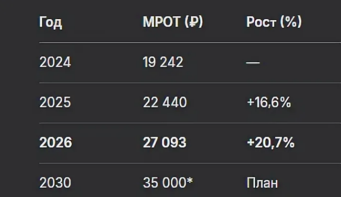 С 1 января 2026 года минимальный размер оплаты труда (МРОТ) установлен в размере 27 093 рублей в месяц.